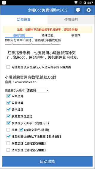 第四步:下载好小曦和游戏之后启动小曦Coc辅助,设置小曦辅助【选择你的版本就可以了,其他默认】,然后点启动,看图