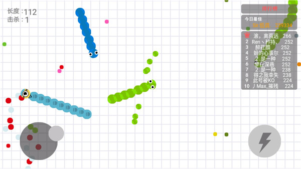 问:怎么击杀敌人,杀敌技巧有哪些?答:首先我们要了解游戏的击杀规则:当你的蛇头撞到另外一个蛇的身上或是游戏版面的边缘是,你就死了。