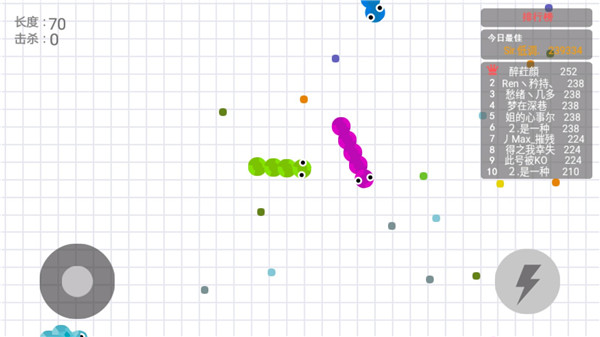 1、超车杀超车,在现实生活中我们经常看到和听到,对于我们贪吃蛇大作战来说,这可是我们增强实力吃到食物常用的飙车技术,是每个玩家都会用到的击杀手段了。利用加速超越其它蛇,然后突然一个变道或转身,让敌人还来不及反应便自投罗网撞上来, 你已经是我眼中的实物了。