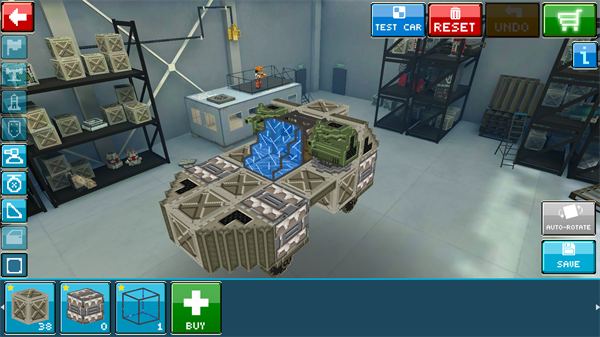 4、汽车测试:各位玩家可以用像素块打造自己的战车,当你拥有了自己的战车,便可以在这个模式中对汽车进行性能测试。