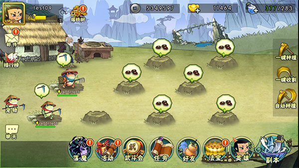 2、等到种子成长成熟之后,我们就可以收割获取相应的道具了。当然,在我们通关相应的副本之后,还会开启相当方便的一键种植和一键收割的功能呦。