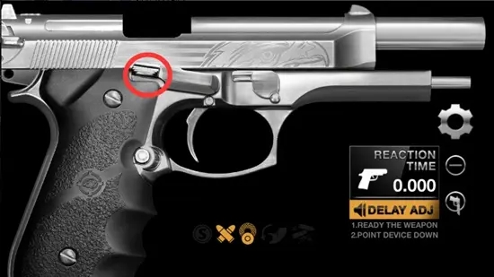 4、手枪:手枪比较特别,打完子弹后要将卡槽放下来才能继续装弹射击。