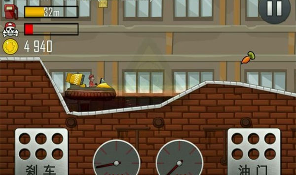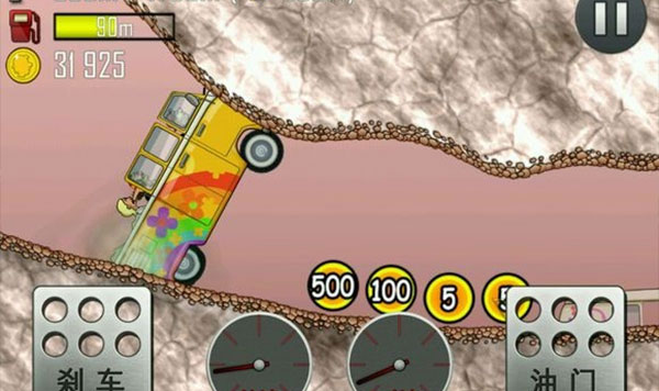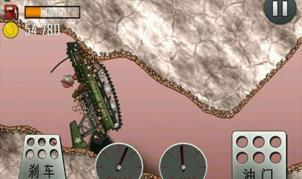 游戏的操作方式是非常的简单的,屏幕右下角的虚拟按键是油门,可以通过按压程度的不同,来给车子进行加速;屏幕左下方角的虚拟按键是刹车,可以对车子进行减速。这个按键还有一个非常大的功能,就是在我们的车子快要翻车的时候,松开油门,点击刹车,就可以矫正我们的车子,使车子不会翻。