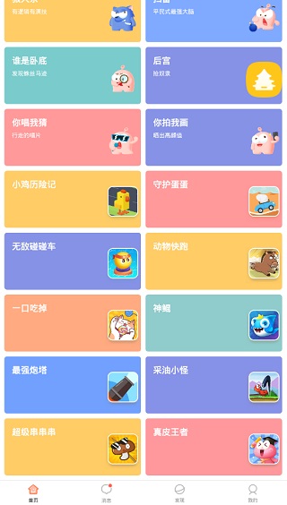 9、小鸡历险记、守护蛋蛋、无敌碰碰车、动物快跑、一口吃掉、神鲲、最强炮塔、采油小怪、超级串串串、真皮王者,更多小游戏根本停不下来。