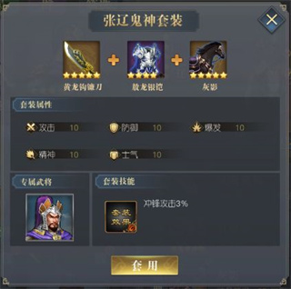 张辽鬼神套装:黄龙钩镰刀+敖龙银铠+灰影