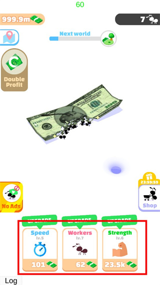 1、你能指引不断发展的蚁群,让他们吞噬大量的小虫子、热狗香肠乃至飞机场;2、给你的蚂蚁大军吞噬你眼前的一切,进而给你获得一枚能够应用的奖赏金币;