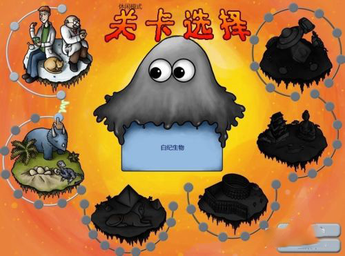 2、一般模式(闯关模式)中的关卡预览,过关模式中有好几个世界(领域)我们会从实验室开始,之后还会穿越回恐龙世纪,是不是听起来很刺激呢?实验室研发出了这个怪物,之后据说是吃掉了什么时间机器。就穿越回了上古时代。然后就可以吃恐龙了。|