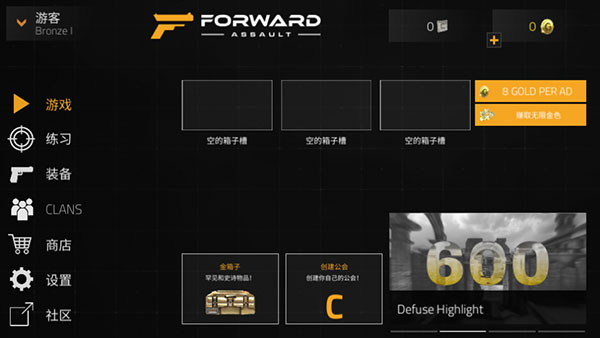 《前锋突袭》是一款第一人称视角的多人在线FPS射击游戏,游戏采用了3D物理引擎打造,拥有出色的游戏画面,任务造型,以及各种特效,你将成为一名特种部队成员,与恐怖分子进行殊死搏斗,多种多样的武器选择,包括步枪、冲锋枪、狙击枪等,每种武器都有独特的特点和能力,玩家可以根据不同的战斗情况来选择合适的武器,真实的声音模拟,真实的射击体验,让你体验不一样的沉浸式枪战手游体验!游戏已经过破解,敌人小地图可见,大量子弹,对战房内随意购买武器,没有脚步声,不怕闪光!为避免和谐失效,赶紧下载体验吧!