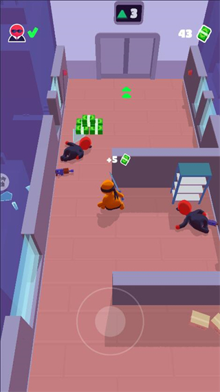 3、在移动的过程中可以从敌人的身后击杀它们并获得钞票。