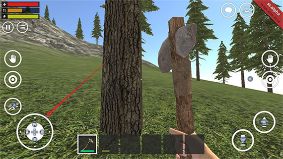 1、进入游戏画面后,点击左侧的方向盘移动角色,靠近要砍的树。