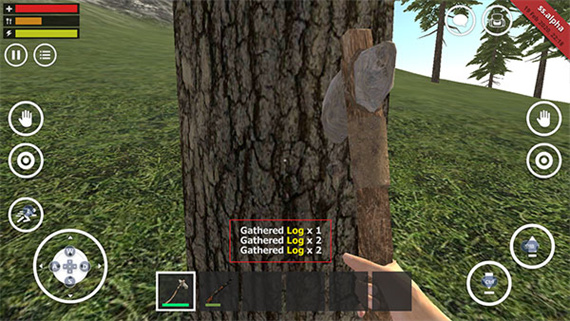 3、砍伐过程中,会听到砍树的声音,同时在屏幕中间会显示Gathered Log ×数字,其中数字就是搜集到的木材数量。