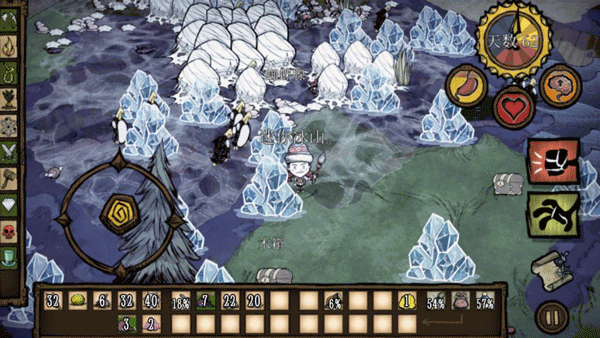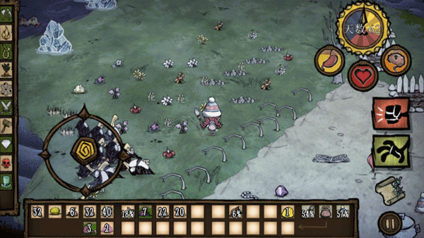 1. 收集资源:在开局的时候角色没有多少资源,所以在这个时候寻找地图中的资源就至关重要了。玩家要时刻注意角色的饱食度和理智,这两个属性对于角色的生存有很大的影响。由于前期的战斗能力不高,所以在物资的收集上建议以火鸡为主,这个动物的能力属性不高,一般来说两斧头就可以搞定。在有了食物之后,火源就是一个关键,要尽快的收集到木材来弄篝火,否则夜晚会有很大的危险。
