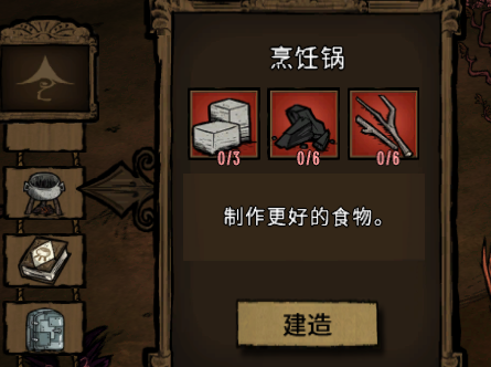 在饥荒新家游戏里玩家想要制作食物,最常见的方法就是烹饪锅。烹饪锅主要由石砖,木炭,树枝合成,合成路线可以说是非常廉价了。在烹饪锅的使用方面,我们只需要将对应的食物放进烹饪锅的格子里,然后点击烹饪。就可以烹饪食物。烹饪锅的主要用途是将低级的食物合成高级的食物,以帮助玩家获取更多的饱食度和血量恢复。