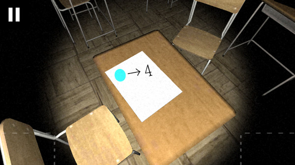 2、转回来,可以看到课桌上有一个提示。兰色圆形→4。