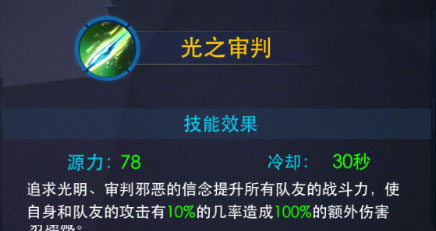 12、“光之审判”赛罗用自己的光之力给予自己和队友胜利的信念提升伤害。