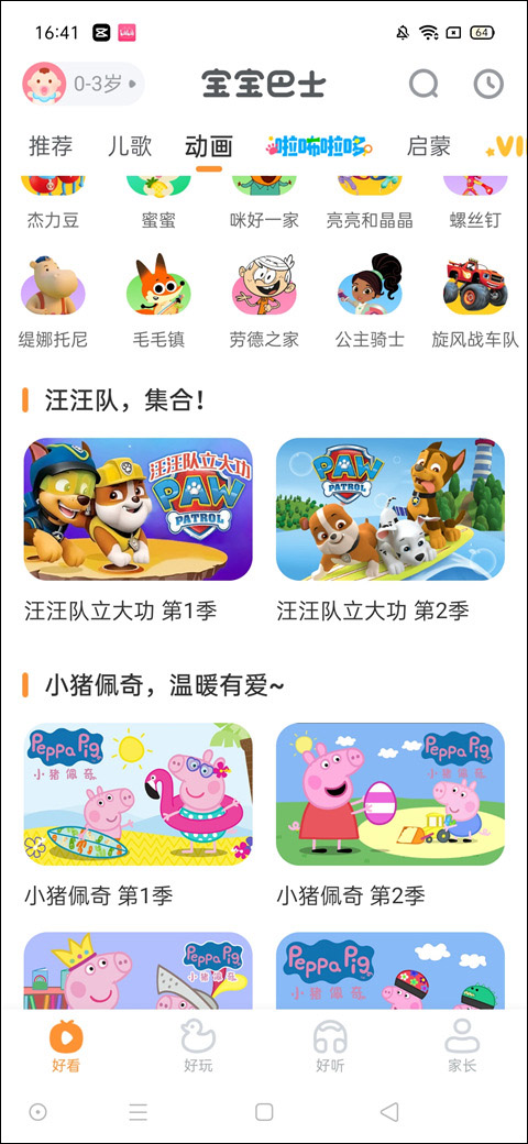 【分龄推荐,省时省力更省心】依据“年龄+能力”体系,设计适用不同年龄段儿童的早教内容。