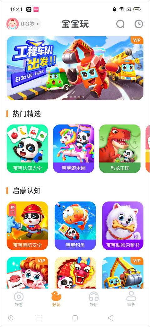 宝宝巴士快乐启蒙是一款儿童启蒙学习软件,小朋友能够学习到很多有趣知识。这款软件有许多分类针对不同年龄段的小朋友,每个年龄有不同的玩法,用户可以自己进行选择,每个孩子都可以在游戏里学习到自己喜欢的知识。小朋友可以不断地尝试新的游戏,了解到新的知识,让小朋友在玩耍中学习到新的知识不在厌学!另外这款游戏采用治愈系的卡通风格制作而来,你将在这里学习到很多有用的知识同时在知识的海洋里感受到不一样的快乐,还有更多的趣味模式等你来体验,还不赶紧选择起来吧。