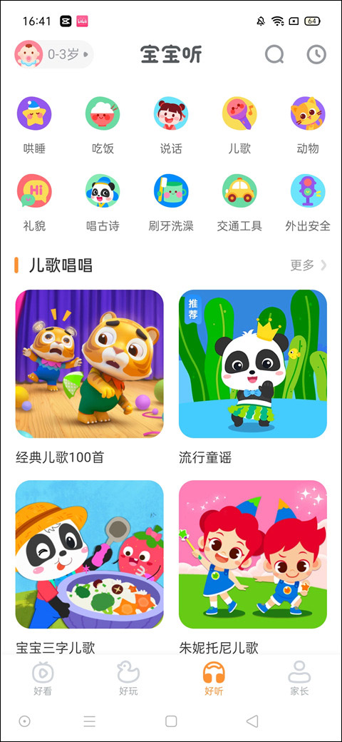 习惯养成:包含哄睡叫早、饮食习惯培养等儿歌,助力宝宝养成早睡早起、不挑食的好习惯。