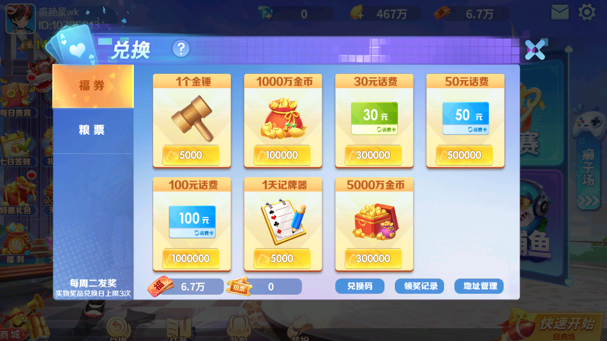 5、在大厅界面你可以选择游戏模式,其中的大师赛可以获得粮票和京东购物劵,其它模式可以获得福劵 ,都可以用来兑换话费。