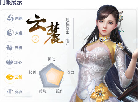 1、职业设定天下手游共有6种职业,基本还是传统的法、牧、战三角结构。其中,职业分别有天机、云麓、弈剑、冰心、太虚、魍魉。除了太虚职业只有男性一种性别,其余职业都是固定的男或女性别。