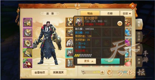 防具有帽子、护肩、衣服、护腿、靴子5个部位,这些防具能为角色提供物理防御、魔法防御、、生命值、回避等防御效果的属性。
