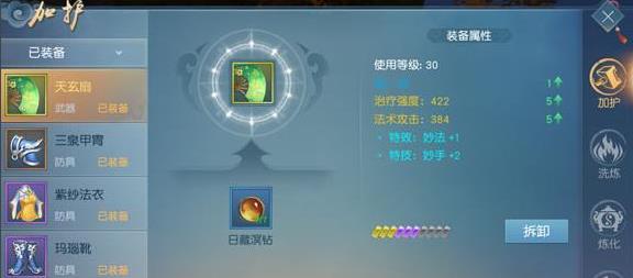 加护有几率失败,失败返还一半的原材料。加护值可以传承到另外一件的装备上,只需要少量的金币费用,玩家也可以进行拆钻操作。加护满10级以后自动升星,升星后获得相应星级的“振翼通溟”效果。