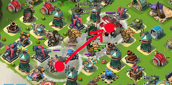 将野人登陆,然后引导到最近的一个防御上,这种操作登陆需要三发烟雾弹!