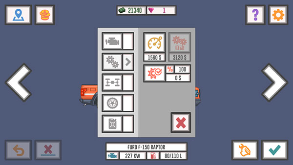 4、这里可以改造货车的引擎、轮胎、耗油量等。