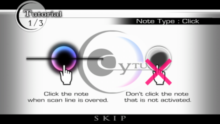 当上下移动的黑色线(扫描线)与圆形的音符的圆心重合时点击音符点击即可
