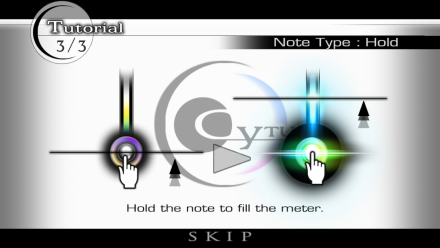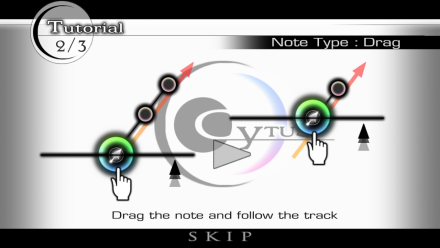 游戏有三种操作音符,分别为普通音符(click)、锁链音符(drag)、长按音符(hold)