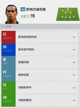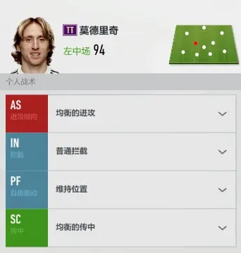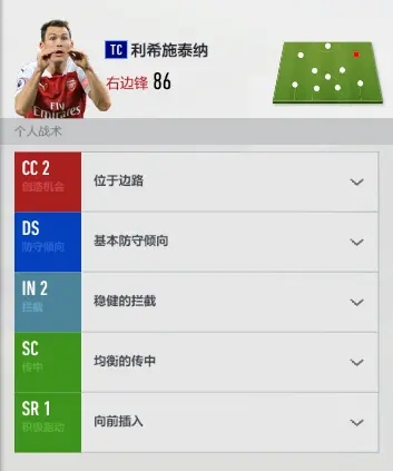 边锋我一般会把CC调成位于边路,我感觉游戏里边锋太容易向里跑了…,有时候边路找不着人。SR我会调成向前插入,这样我打的顺手一些。