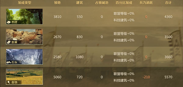 ③升级建筑:采石场可以提高石头产出量、矿场可以提高金属产出量、伐木场可以提高木材产出量、牧场提高食物产生量,对这些建筑进行升级可以提高对应资源产量。