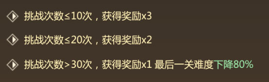 挑战次数影响通关奖励加成,越少次数挑战成功奖励越丰厚。(平局不计如挑战次数,失败或胜利计入挑战次数)