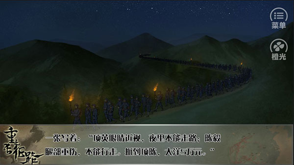 1、剧情互动类游戏,长征路上的辛酸和劳累等你体验2、感受革命前辈的辛苦,穿越半个中国保存了革命的火种