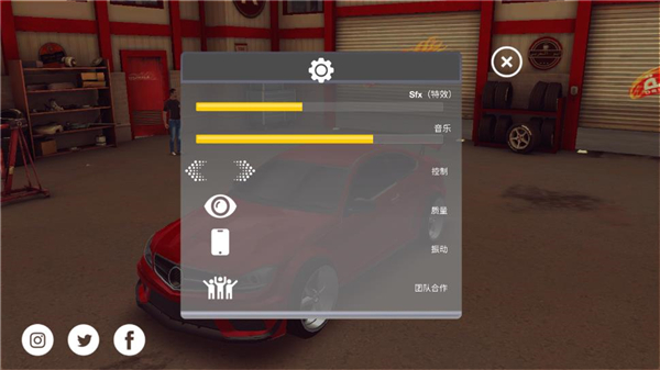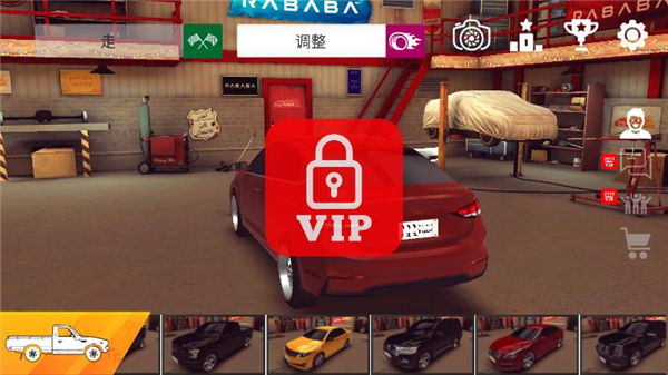 选择好之后,直接进入游戏主界面,此时玩家可通过图中箭头所指位置来打开车库,并从中选择您中意的赛车来完成系统给定的全部挑战任务(本站小编为您带来的这款游戏,已解锁全部车辆,玩家可自由选择)