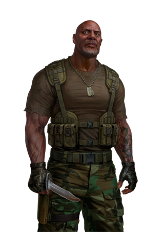 介绍:特种兵出身,退役后成为了雇佣兵,脸上的刀疤是他最明显的标志。战火的洗礼让巴克拥有超出常人的胆量、战斗直觉和杀伐果断,是野兽一样的男人。作为保护科学家的护卫兵加入科考队,与掉队的凯恩成为唯二的幸存者,也是唯一见过岛屿中心“真相”的人。