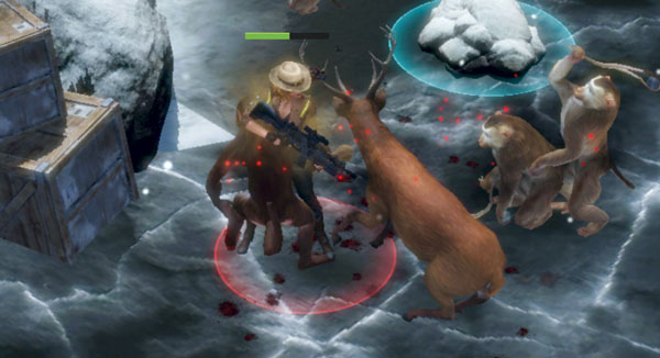 大陷阱及弓的配合:首先说弓,用弓射大动物,必须要射三次才行,射一次后动物就跑了,要用到大陷阱了。当你发现某动物后,预测一下它要行动的方向,然后在那几个方向都放上陷阱,这样很快它就会自投罗网了!