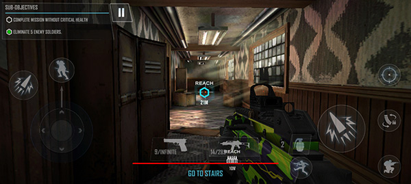 1、充溢3D气息的画质打造出一个非常真实的地图场景,各位小伙伴能够最大程度的感受到激烈的枪击战场,仿佛自己亲生阅历在里面一般刺激过瘾2、十几种不同的武器装备随意你们选择,能够用金币钞票来购买强化,不同类型的枪械属性和攻击力都会有变化,依据不同战役选择适宜的才是获胜关键