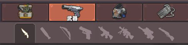 按照图片顺序,分别为:利刃, 钝器, 弓弩, 轻武器, 步枪, 重武器, 狙击枪,散弹枪。