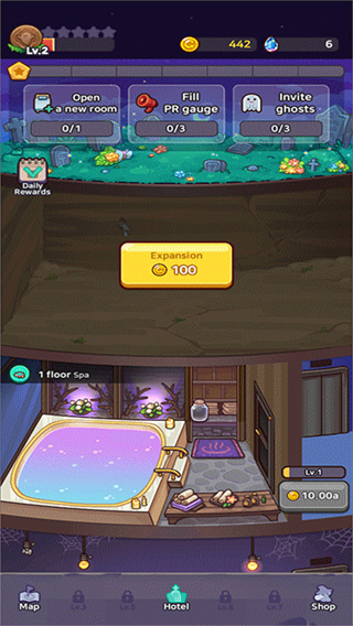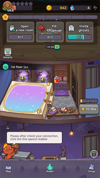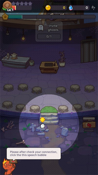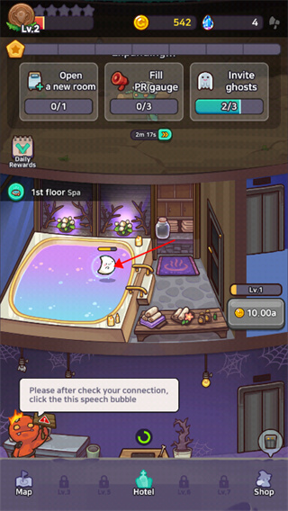 2、然后就会有小幽灵来啦,点击它即可进入酒店;
