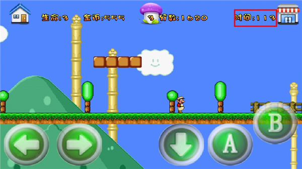 3、进入游戏后,玩家们可点击固定的虚拟按键来操控玛丽