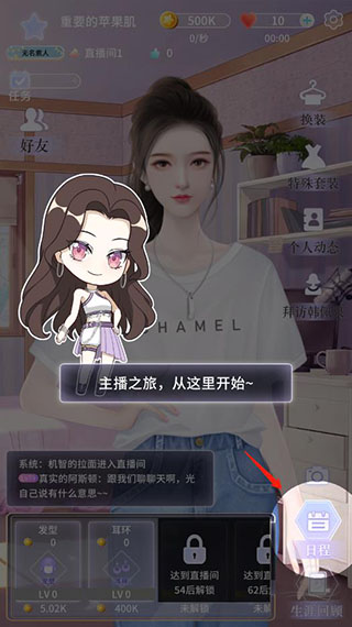 1、下载我是大主播游戏后,你的主播之旅正式开启,点击日程;