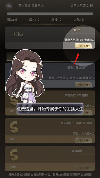 3、游戏中会有好多事情发生,还有不同的选择等着玩家,不断的努力朝着大主播走。