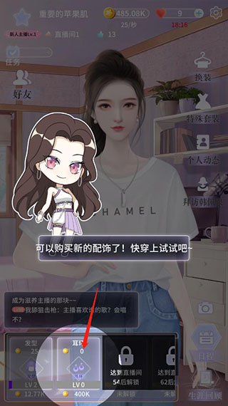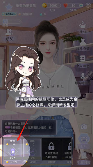 4、身为主播一定要保持直播间的靓丽形象,点击发型可以解锁新发型;