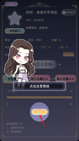 6、在左上角可以查看自己的粉丝、排名、口碑以及艺人等级等等;