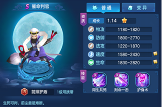 催命判官:别看他瘦瘦弱弱的,但他的确是一个肉哦,为什么这么说呢,因为他的核心技能是同生共死,可以为队友分摊伤害,再带上群奶的奶妈,画面很美不敢想象。