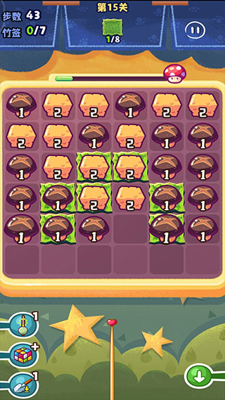 1、过关的时候合理的利用竹签火焰技能、道具、广告,和增加五步,不要舍不得用。