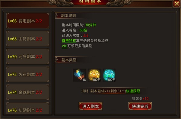 除魔任务,全部三倍,材料副本,我建议羽毛和元气双倍,中小资玩家,可以祈福火石第一次和第二次,第一次免费,第二次三倍,比材料副本划算。