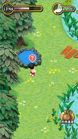 3、炸开巨石之后,来到湖泊区域,使用空瓶(可以在海岸,湖泊区域捡到)在湖泊区域左边处或森林的右下角处的水池里装上水,然后与薄荷草一起做成驱赶蝙蝠用的薄荷水。