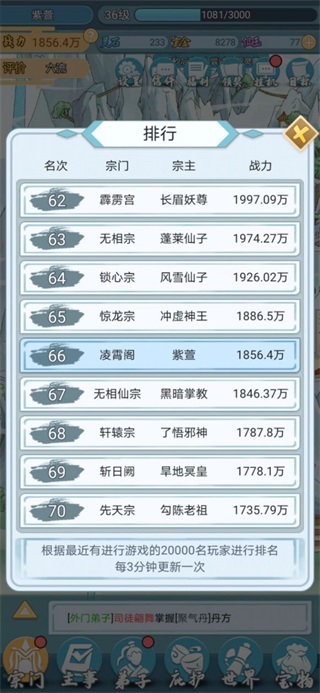 大比最主要的功能就是空出杂役弟子的位置和增加修为增长速度。只有空出杂役弟子的位置,才能不断招人,所以要每次大比都有前三才能保证宗门战力的高速增长。小技巧,前期强化宝物给弟子装备增长战力赢得前三,再全部卸下以此循环。不要看大比的打斗介绍花里胡哨,只要弟子战力达标就可以进前三,杂役弟子战力在2.5W左右就可前三,稳一点4W以上就可以第一(有时候也看运气,我有一次4.2W就落选了,一次3W第一),外门6.5W左右前三(7.5W以上第一),内门弟子11W前三(12W第一)。内门弟子前三可以升核心弟子或亲传弟子,怎么升亲传好像是随机吧,没测出来。大比尽量得第一,后面的大比,第一和第三的修为增长速度奖励差距越大。后期杂役大比包前三,尽量多加人进宗门。